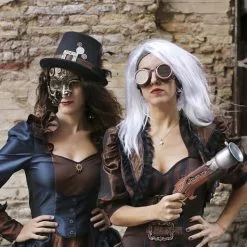 Sombrero Steampunk Negro Con Gafas Y Plumas Para Adulto