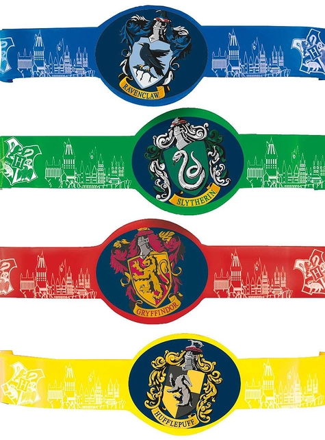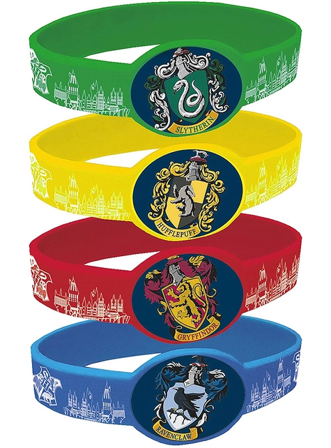 Incluye: 4 pulseras de plástico suave de las 4 casas de Hogwarts