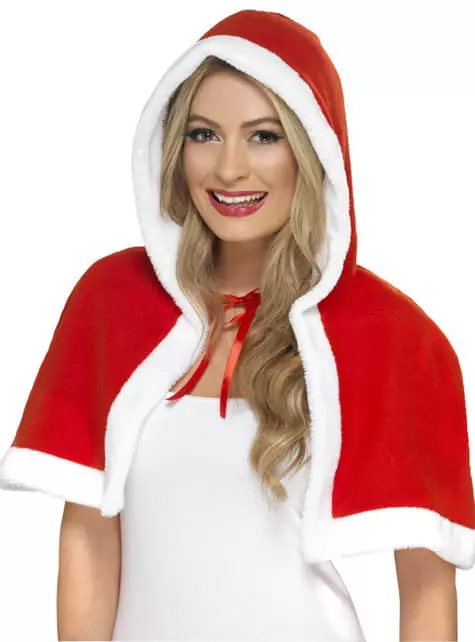 Completa tu disfraz estás navidades con esta capa pequeña de Mamá Noel para mujer.