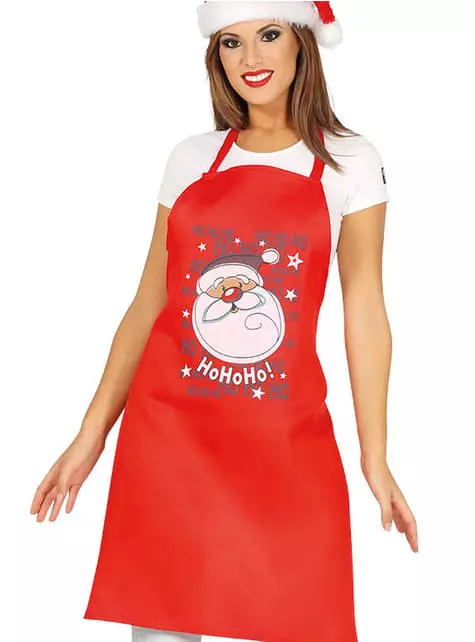 Incluye un delantal de color rojo con las lazadas en verde, con un árbol de Navidad decorado en el centro y la inscripción “Merry Christmas” deseándote Feliz Navidad. Mide aproximadamente 85 cm.