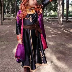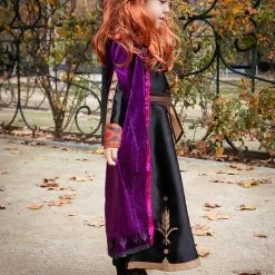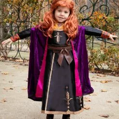 Este traje de Anna Frozen 2 para niña está compuesto por un precioso vestido deluxe de princesa y de color negro con detalles dorados, además de una magestuosa capa morada. Podrás encontrarlo en diferentes tallas desde los 3 hasta los 10 años.