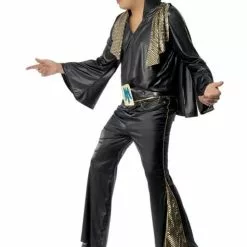 Serás el rey de la pista con este disfraz de Elvis negro y dorado.