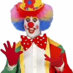 Incluye un par de guantes tradicionales de color rojo para hombre.