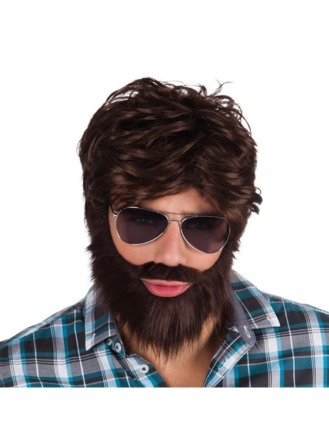 Incluye un kit con una peluca corta color castaño y una barba color castaño.