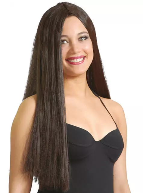 Estarás sencilla y muy guapa con esta peluca básica de melena larga castaña.