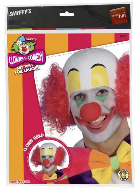 Tu objetivo será hacer reír con esta peluca de payaso calvorota.