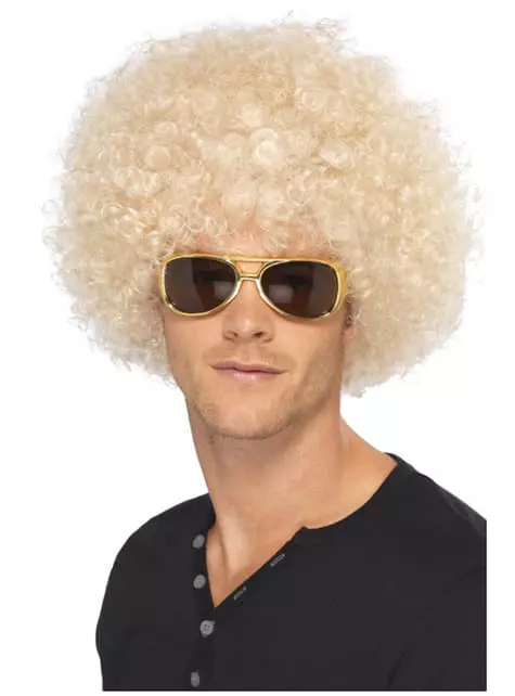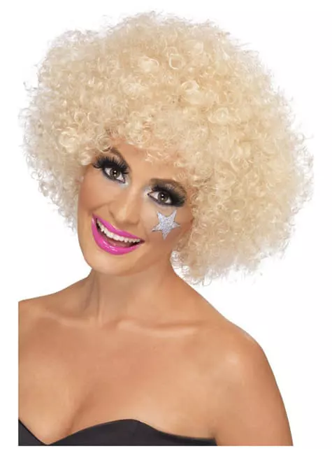 Incluye peluca afro rubia corta y rizada de los 70.