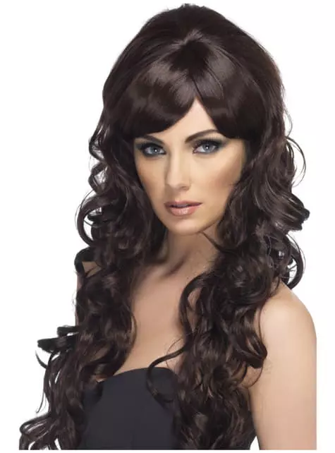 Incluye una peluca marrón de melena larga y rizada.