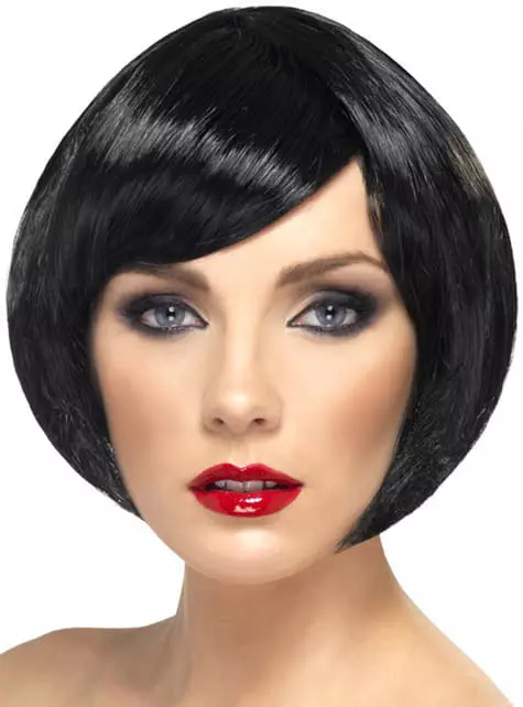 Completa tu disfraz y dale un toque chic con esta peluca negra bob con flequillo.