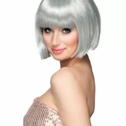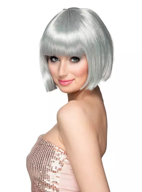Peluca Plateada Media Melena Con Flequillo Para Mujer