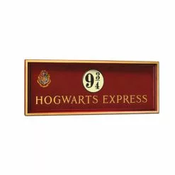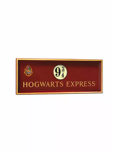 Réplica en madera tallada de la placa indicativa del andén 9 3/4 que alberga el tren Hogwarts Express. Medidas aproximadas: 55 x 20 cm