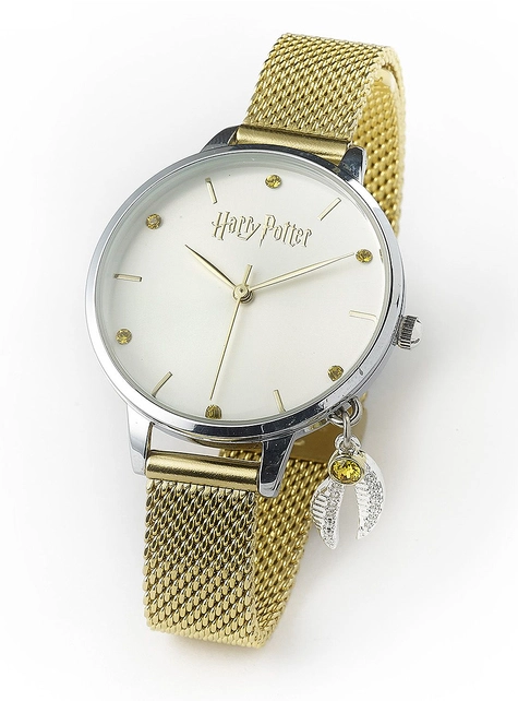 Incluye: Reloj con correa de acero inoxidable chapada en oro. Esfera de acero inoxidable con un dije de la Snitch dorada en plata esterlina con cristales Swarovski®.