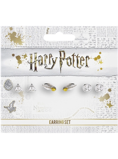 Incluye: 3 pendientes de Snitch, andén 9 3/4 y el símbolo de las reliquias de la muerte