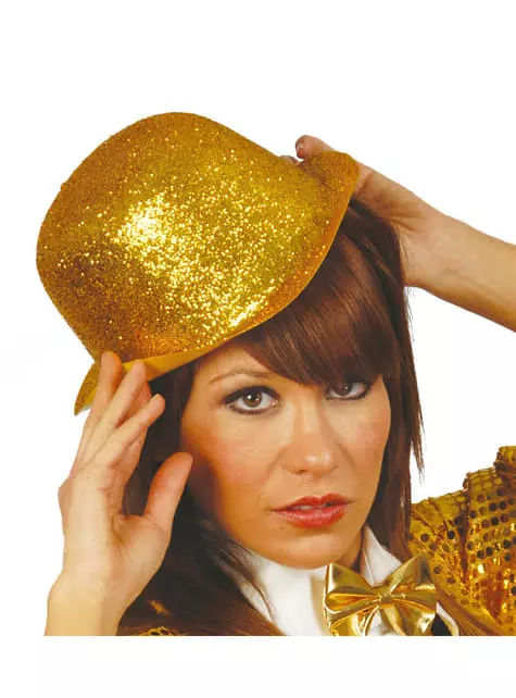 Resplandecerás como el oro con este sombrero bombín de escarcha oro.