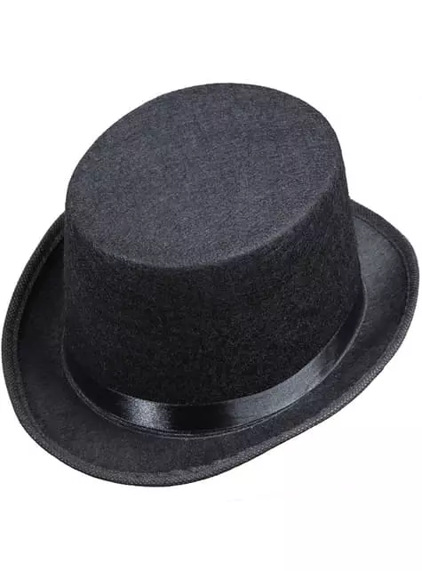 Incluye un clásico sombrero de copa de color negro, con una cinta negra.